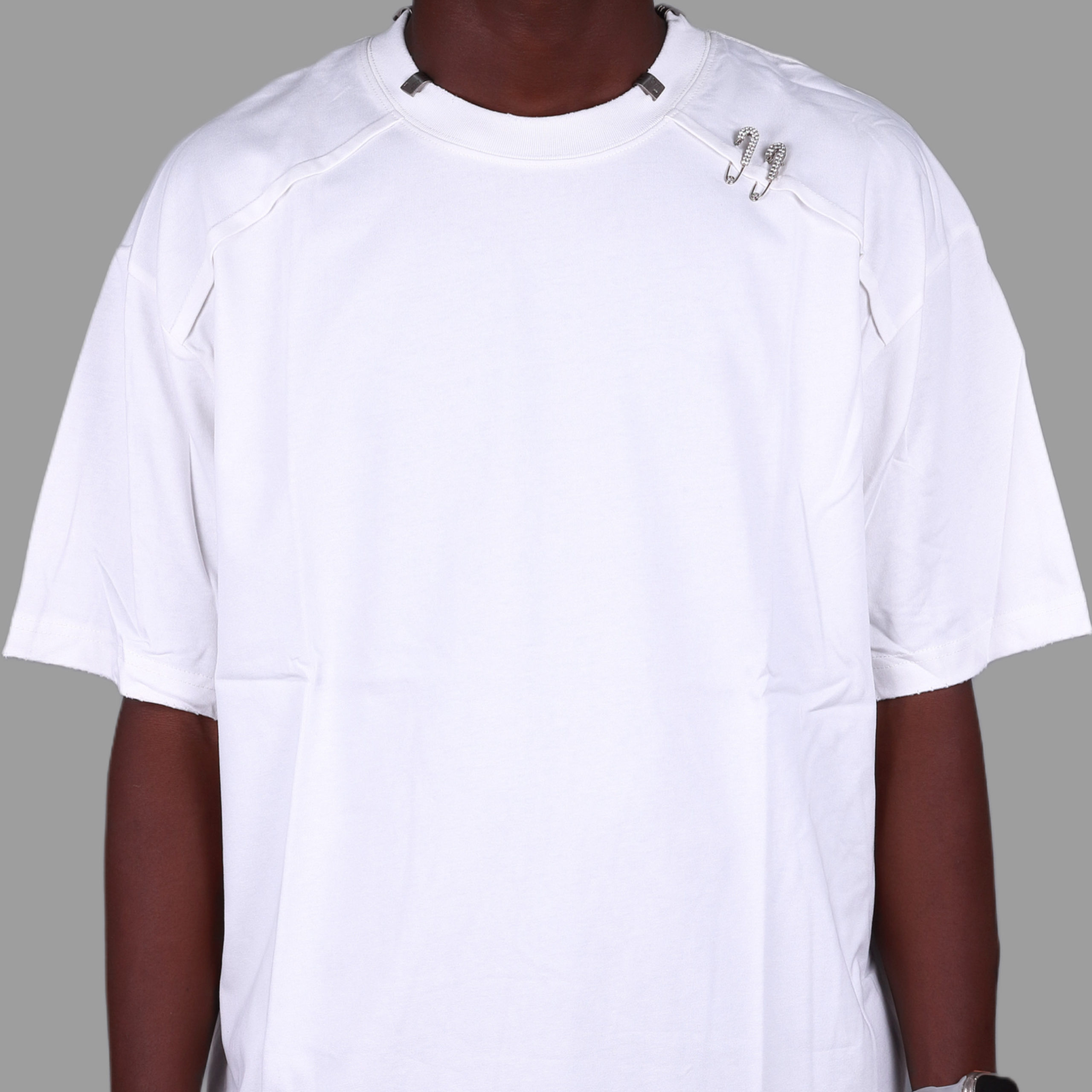 Color: Crisp white with subtle paneled stitching details