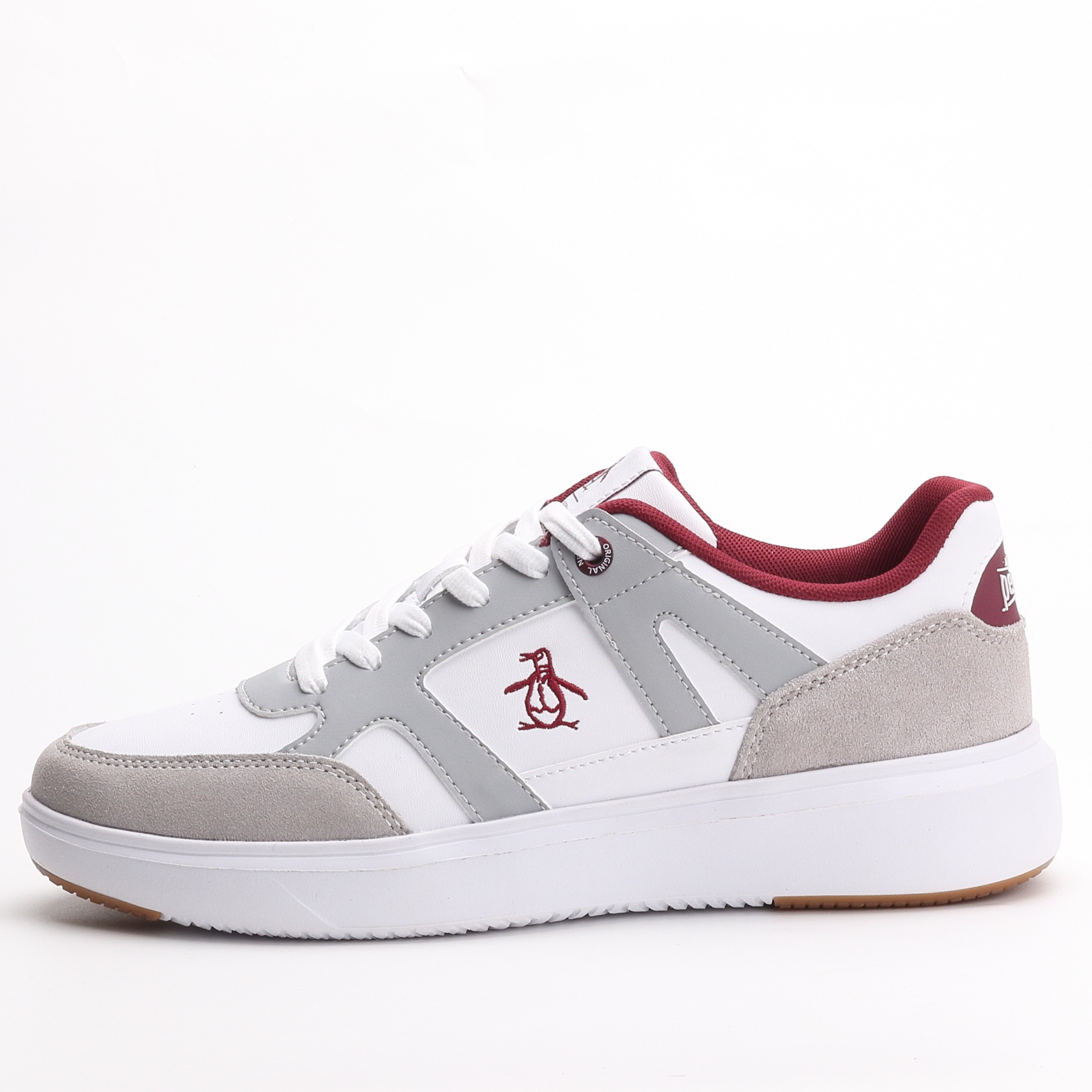 A dependable choice for anyone seeking comfort, versatility, and timeless Penguin style.Penguin sneakers, unisex sneakers, white sneakers, red detail sneakers, lace-up shoes, casual footwear, everyday sneakers