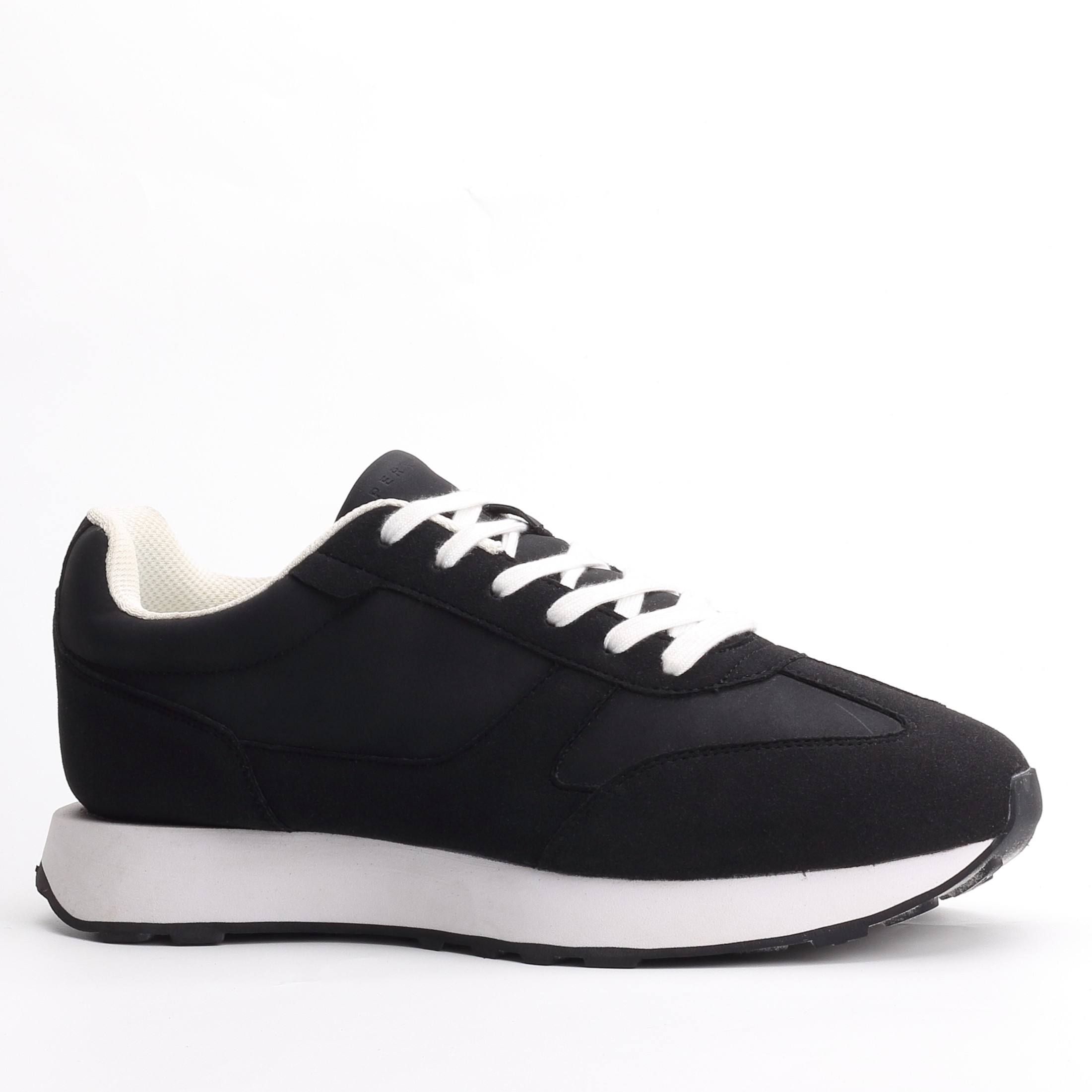 Crafted with a premium man-made leather or synthetic upper in a sleek all-black finish, featuring clean lines, subtle stitching, and minimal branding for a polished, versatile look that pairs effortlessly with chinos, jeans, trousers, or smart-casual outfits. The lace-up closure provides a secure, adjustable fit that conforms to your foot shape, while padded collar, tongue, and cushioned elements ensure irritation-free support during extended wear.